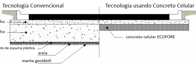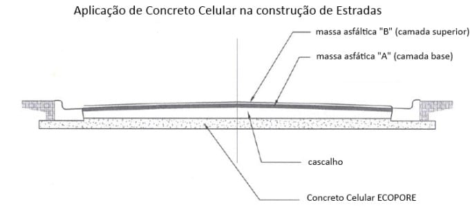 - Normalmente exige menor escavação do leito da estrada para alcançar uma estrutura de estrada adequada, tendo em vista que o concreto celular irá proporcionar maior resistência e isolamento de uma camada;